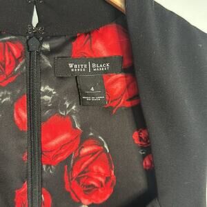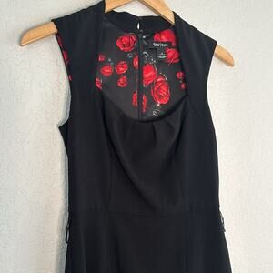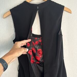 WHBM Black Dress Lined Dark Red Roses Interior Office Siren Goth Vampire