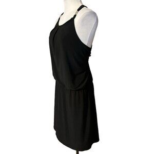This pretty dress is from White House Black Market in a misses size extra large. Jet black with silvertone hardware at the shoulders..
