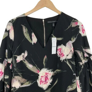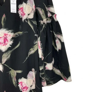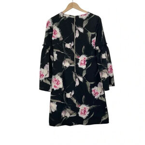 WHBM Black Floral Long Bell Sleeve Dress V-Neck Size 2
