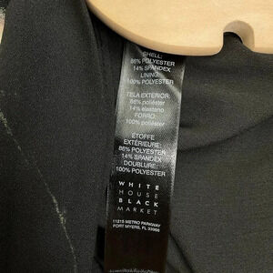 White House Black Market. Hits above the knee. Elasticized sleeves. Exposed gold zipper. Lined