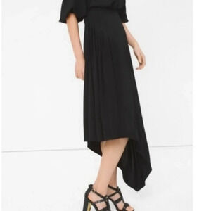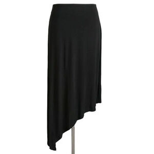 WHBM Black Jersey Asymmetrical Midi A-Line Skirt- White House Black Market
