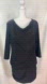 Long sleeve dress with a slouchy top and bodycon skirt with rouched side detailing (sides are shorter than front/ back). Featuring a lovely draped cowl neckline that leads up to awesome gold shoulder details. This is fitted at the skirt and a daring length, but the top being long sleeved really balances the look out. 95 Polyester/ 5 Spandex, so this offers stretch and will hug those beautiful curves wonderfully! This amazing LBD is a great on the town/ party dress!