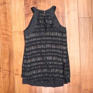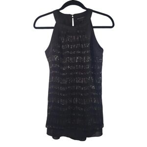 WHBM Black Metallic Silk Tank Blouse Size 2 High-Neck Black