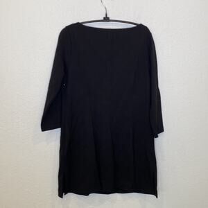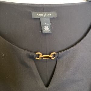 WHBM Black Midi Shift Dress Metal Clasp Neck Detail 3/4 Sleeves EUC Sz M Stretch