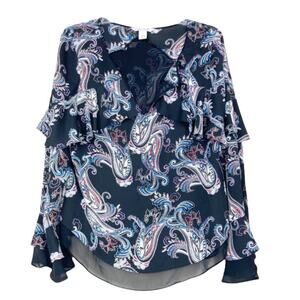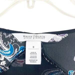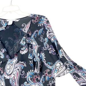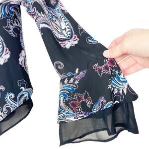 White House Black Market black paisley print chiffon ruffle detail blouse Sz 8