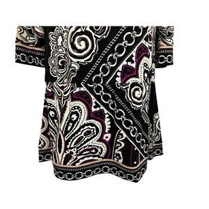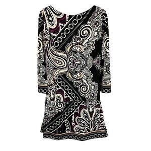 WHBM Black Paisley Print 3/4-Sleeve Flounce Jersey Dress Size M Shift Dress