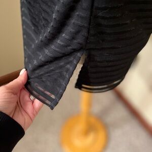 WHBM Black Short Sleeve Striped Sheer At Chest Shirt Sz XS