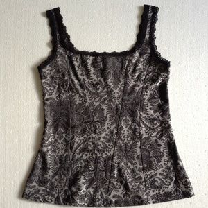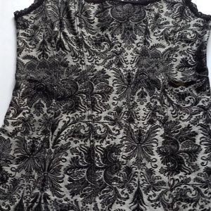 It can easily be dressed up or down. The silver in the pattern has a metallic like sheen.