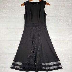 WHBM Black Sleeveless Flare Dress Midi Dress with Lace Netting Hem Line Size 00