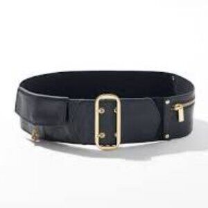 The coolest belt, perfect for an edgy look! Looks fantastic with dresses or jeans/dress pants. Has small zipper compartment and also a small snap-close pouch for convenience to carry a small item. Excellent condition.