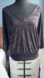 WHBM Black V-Neck Short Kimono Sleeve Ribbed Hem Blouse w Bronze Pattern