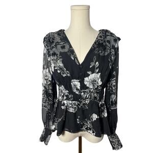WHBM Black White Floral Ruffle Top MEDIUM