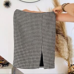 WHBM Black White Houndstooth Pencil Wool Knee length Slit Mini Straight Skirt 4