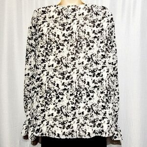 WHBM Black & White Leaf Pattern Long Ruffled Sleeve Blouse (M)
