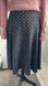 Elegant a-line midi skirt with classic polka dots. Perfect for versatile styling. Dress up or down depending on the occasion!
