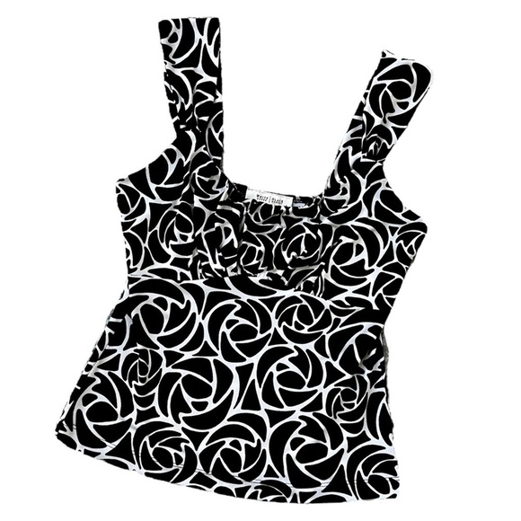 WHBM Black & White Sleeveless Silky Rosette Patterned Top Empire Waist Size XS