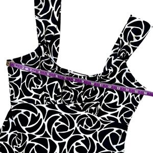 WHBM Black & White Sleeveless Silky Rosette Patterned Top with Empire Waist Size XS in excellent condition - no flaws whatsoever. Really cute with slightly gathered, wide shoulder straps. See photos for measurements lying flat.