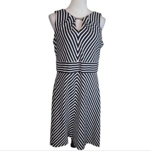WHBM Black & White Striped Sleeveless Keyhole Neckline Dress Size 14