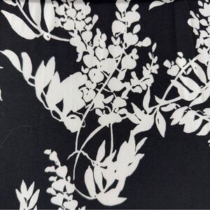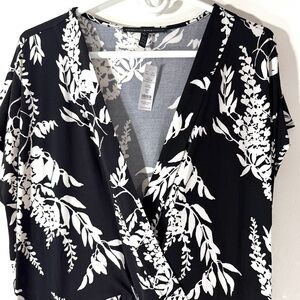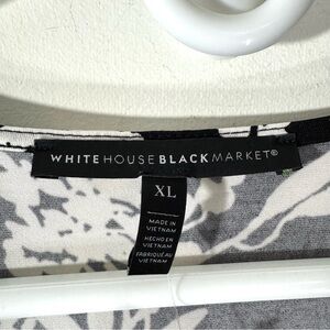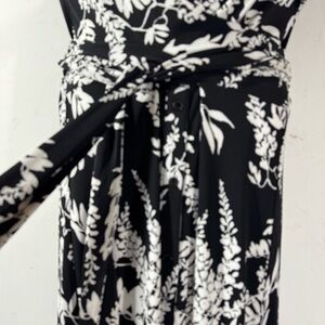 WHBM White House Black Market black and white wisteria floral wrap front midi dress with attached wrap belt and double front slits