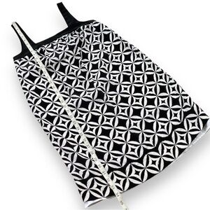WHBM White House Black Market Black and White Retro Mod Geometric Print Mini Shift Dress Size 2.