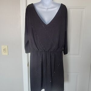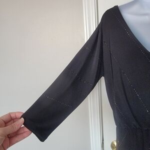WHBM Blouson Top 3/4 Sleeves Black Diagonal Sparkles Short Party Cocktail M