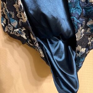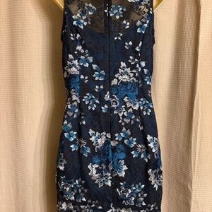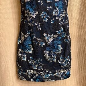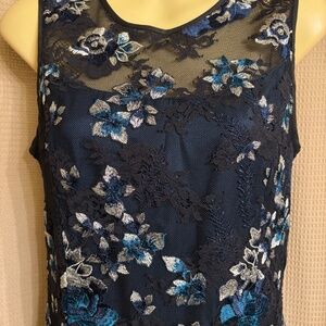 WHBM Blue Embroidery Flower on Black Lace Dress Women's 4