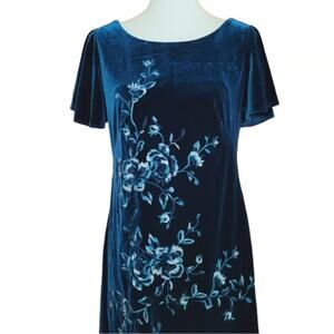 WHBM Blue Velvet Flutter Sleeve Embroidered Floral Dress EUC Size Small