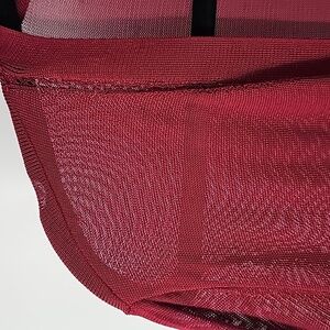 White House Black Market Sheer Deep Red Open Front Longline Cardigan with Detailed Trim. Delicate Lightweight Fabric Shows Some Snags. Gorgeous Way to Elevate Any Outfit!