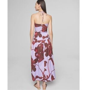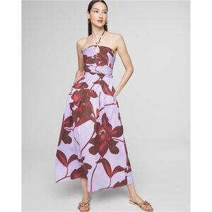 WHBM CAMILLE FIRL Floral Halter Maxi Dress in Purple and brown SZ 18 NWT