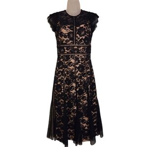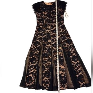 WHBM Cap Sleeve All Over Lace Godet Fit N Flare Dress Cocktail Party Black