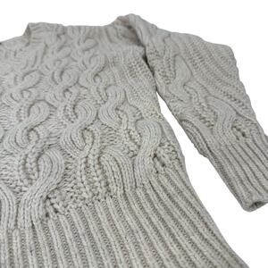 WHBM Chunky Sweater Cable Knit Wool Blend Cream White Cozy Large