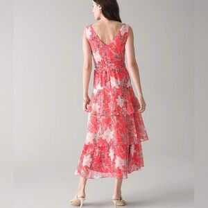 Our flirty floral print midi dress is fitted around the bustline, then fits away from the waist into a flowy, tiered A-line skirt. Coral classic rose print is bold, yet feminine, with subtle tiers of fabric that add movement as you walk. Lined, sleeveless, V-neck, with a removable belt, and back has an elastic waist.