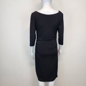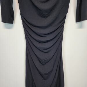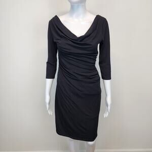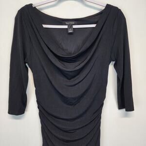 WHBM Cowl Neck Sheath Dress Size 4 Black Stretch Y2K 3/4 Sleeve Ruched Evening