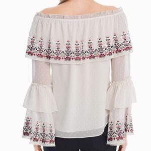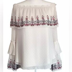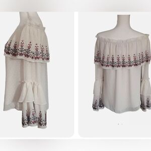 WHBM Creamy Taupe Off Shoulder Embroidered Floral Flowy Peasant Blouse