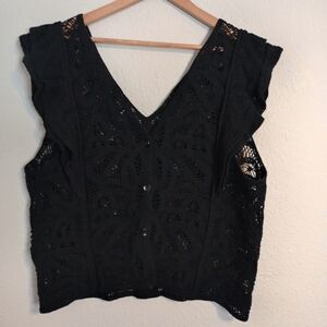WHBM Crochet Ruffle-Sleeve Sweater dark romantic
