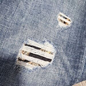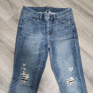 WHBM Curvy Mid Rise Everyday Soft Destructed Slim Jeans, no flaws very gently worn and lots of life left. Great dressed up or down. Metallic under drstructed areas for fun and slight stretch for comfort. Waist flat 15", 9" rise and 29" inseam.