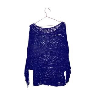 WHBM Deep Marine Fringe Open Knit Poncho - Size Small