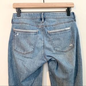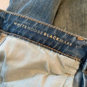 This is a pair of gently used women's White House Black Market Destructed Chain Girlfriend Jeans.