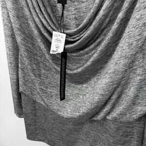 NEW WHBM Drape-back Tunic Size Medium Gray Metallic Slinky Knit Long Sleeves