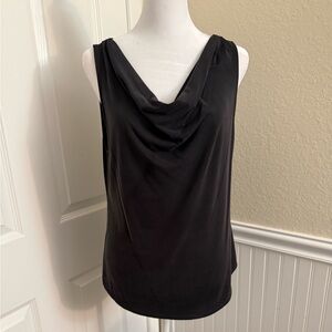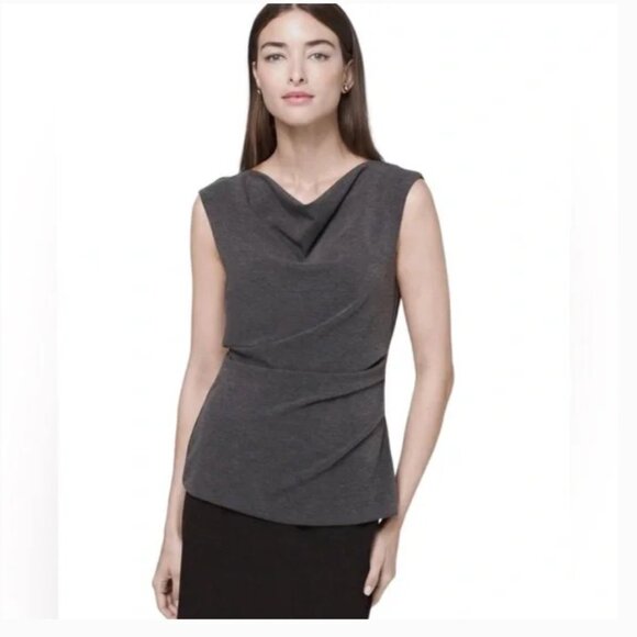 Soft charcoal gray drape-neck shell top can be worn alone or with a suit/jacket. Gently form fitting and forgiving, lets you be comfortable yet professional at work or breezy at play.