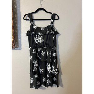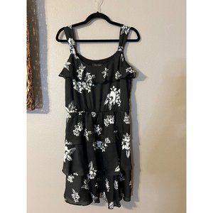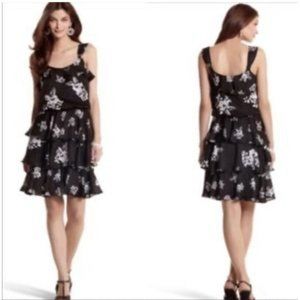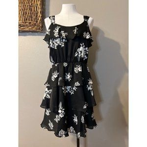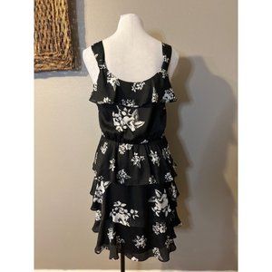 WHBM Dress 8 Flowy Flutter Stretch Washable Black White Floral Ruffle Washable