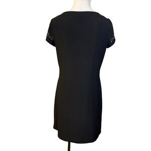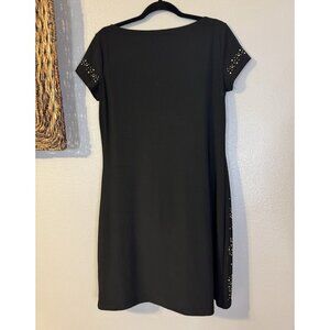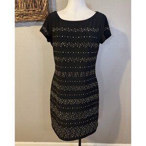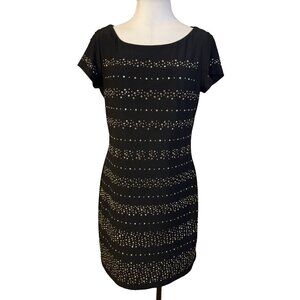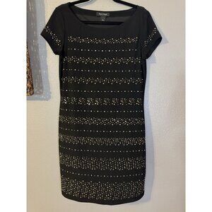 WHBM Dress M Stretch Black Gold Silver Studded Short Sleeve Washable