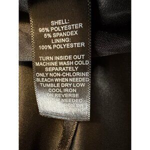 This pretty dress is from White House Black Market in a misses size medium. Black, silver and gold in color. Fully lined, made of polyester/spandex. Machine washable. Pullover style with stretch.