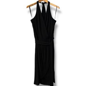 WHBM Dress NWT Women's Sz 12 Little Black Dress Midi-Length Knit Halter Wrap