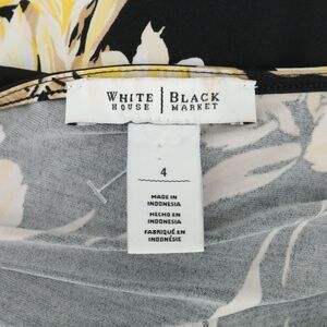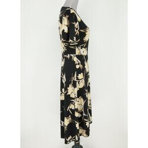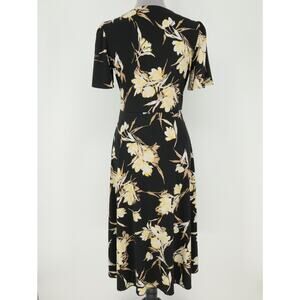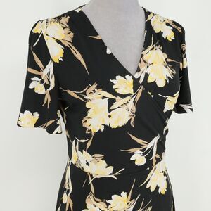 WHBM Dress Women's 4 Black Yellow Floral Stretch Knit Faux Wrap Fit n Flare