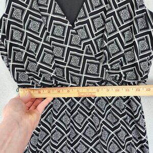 WHBM Dress Womens 6 Black White Geometric Print Sleeveless Casual V Neck
