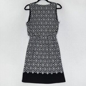 WHBM Dress Womens 6 Black White Geometric Print Sleeveless Casual V Neck. In very good pre-owned condition. Does not come with a belt.