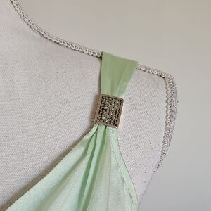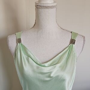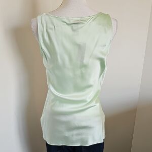 This elegant green satin top is perfect for any occasion. Its sleek design and soft fabric offer both comfort and style. Official color is divinity. (g3)