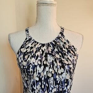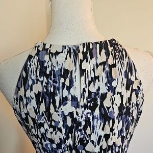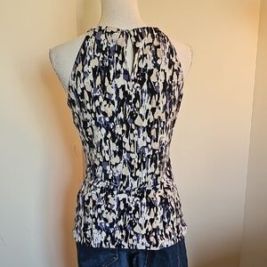 WHBM Elegant Sleeveless Abstract Top - Black, Navy and White