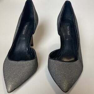 WHBM Ella Silver Glitter Pumps size US 7 D'Orsay Glitter Embossed Black Leather